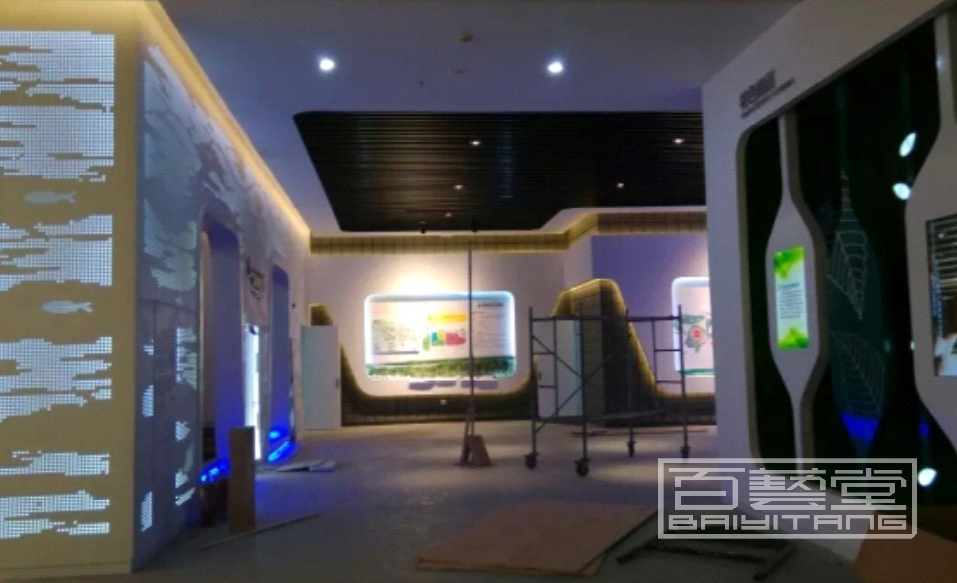 蝕刻彩色不銹鋼、波浪形鋁單板,鋁雕刻板,點綴效果,鏤空內(nèi)側藏燈帶,歷史區(qū)鐵灰色藏暖光,現(xiàn)代區(qū)白色藏白光或藍光,也可用來包裝影院數(shù)字沙盤等外墻面,實體效果非常美觀,創(chuàng)作手法隨意發(fā)揮。