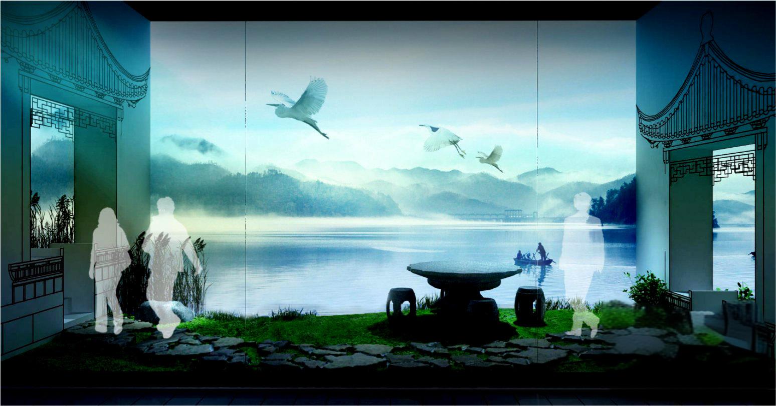 以水為故事主題線索或空間設計元素串聯四大展區序廳、歷史演繹廳、規劃發展廳、生態體念廳。